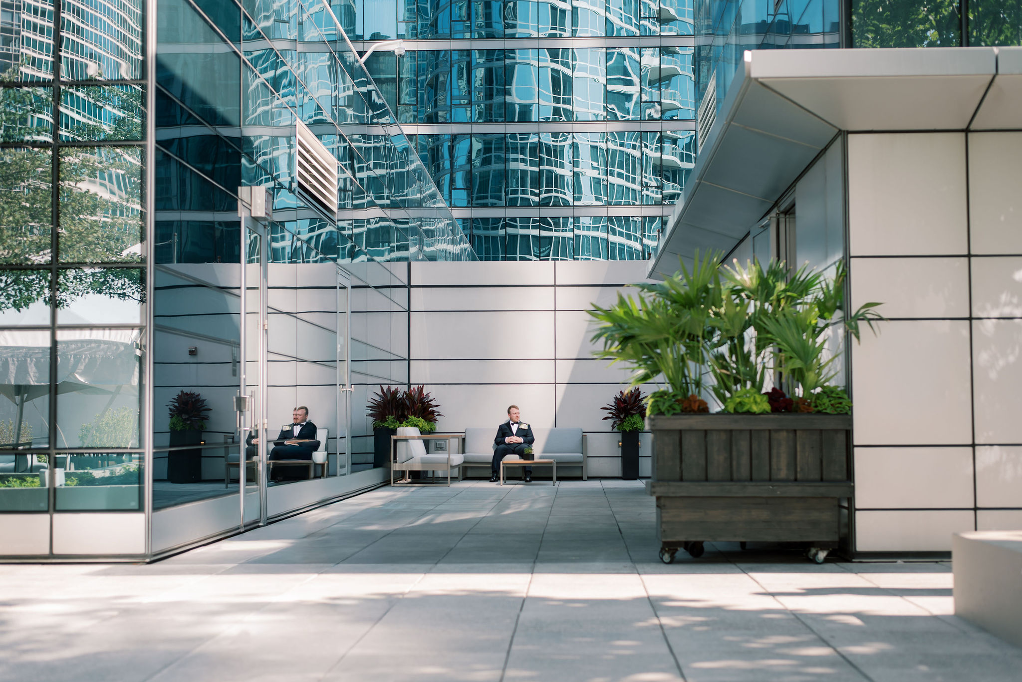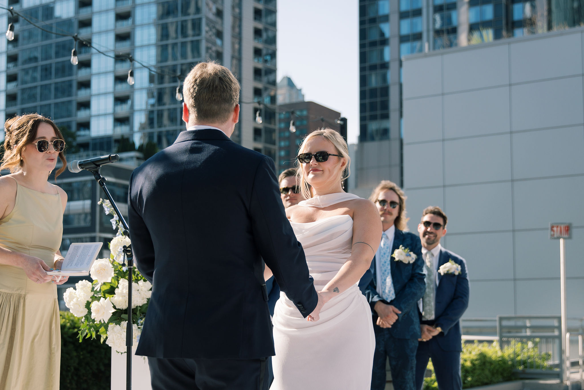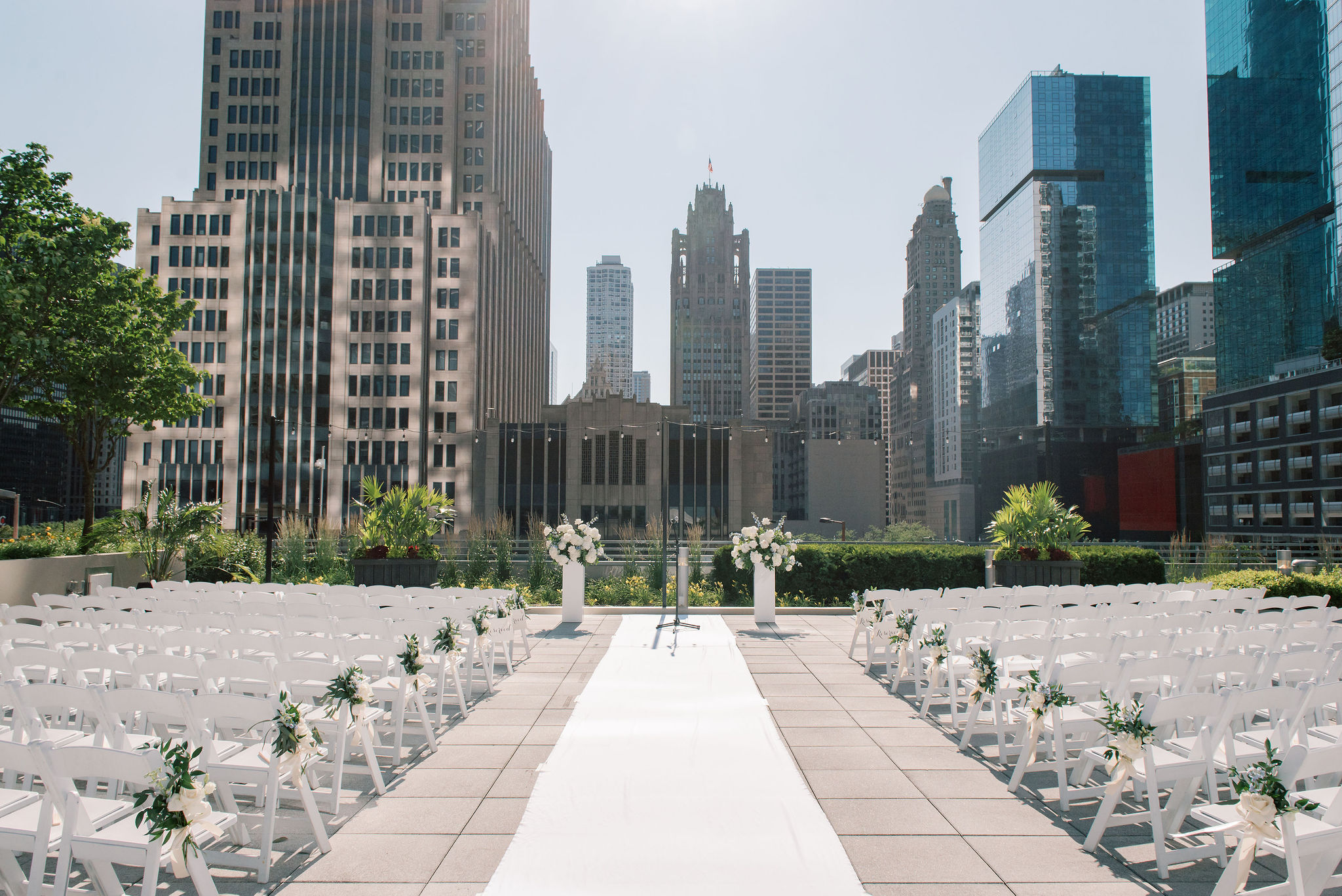 Their ceremony took place on the Garden Terrace, with the Chicago skyline as their backdrop. Every moment — from their exchange of vows to the quiet smiles they shared — felt intimate and full of meaning.